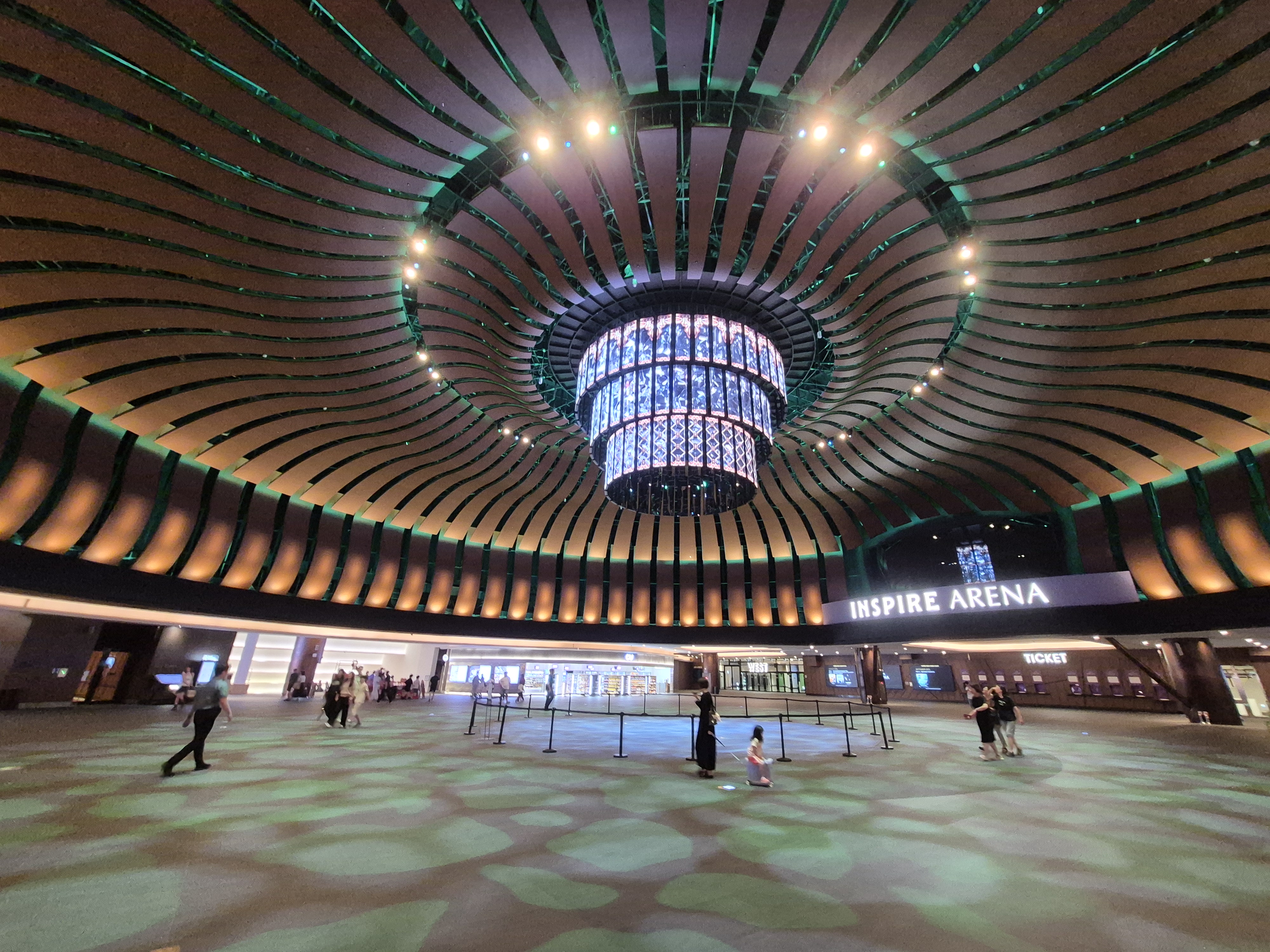 인스파이어 엔터테인먼트 리조트에 있는 대형공연장인 아레나 실내 출입구 앞 로룬다 풍경입니다.