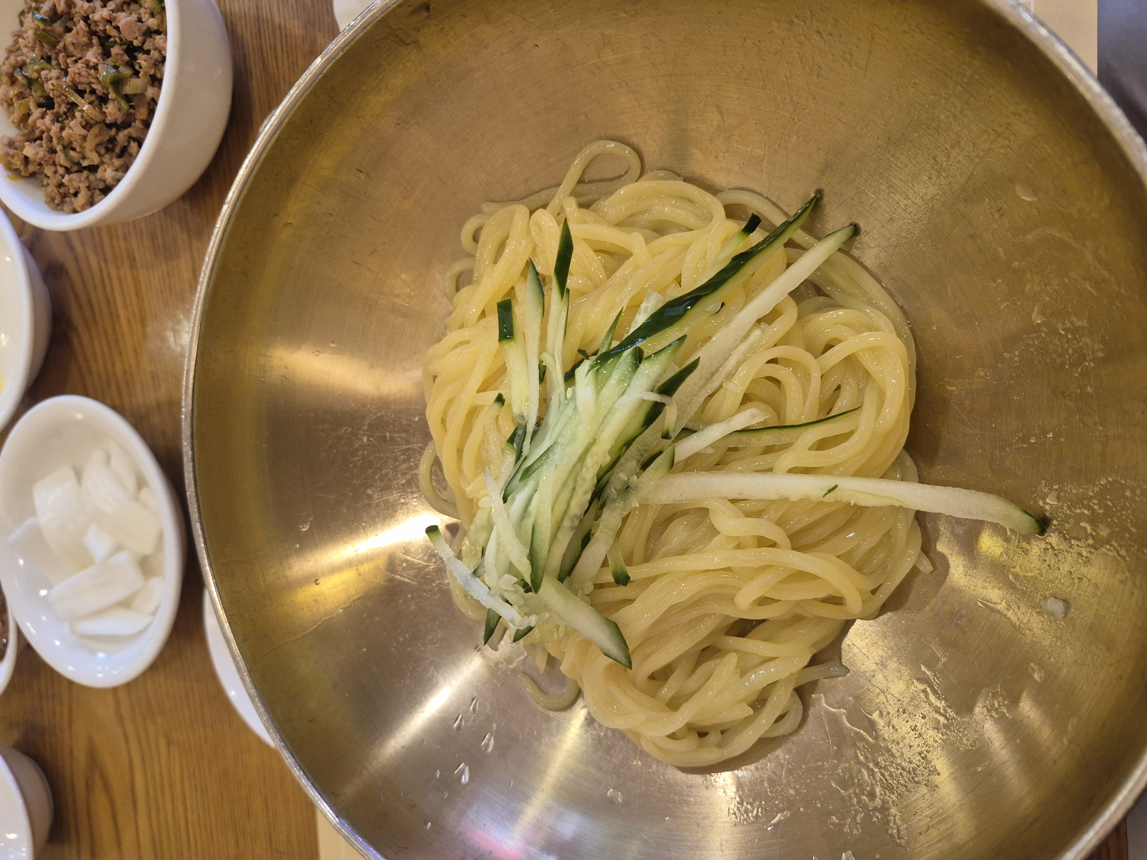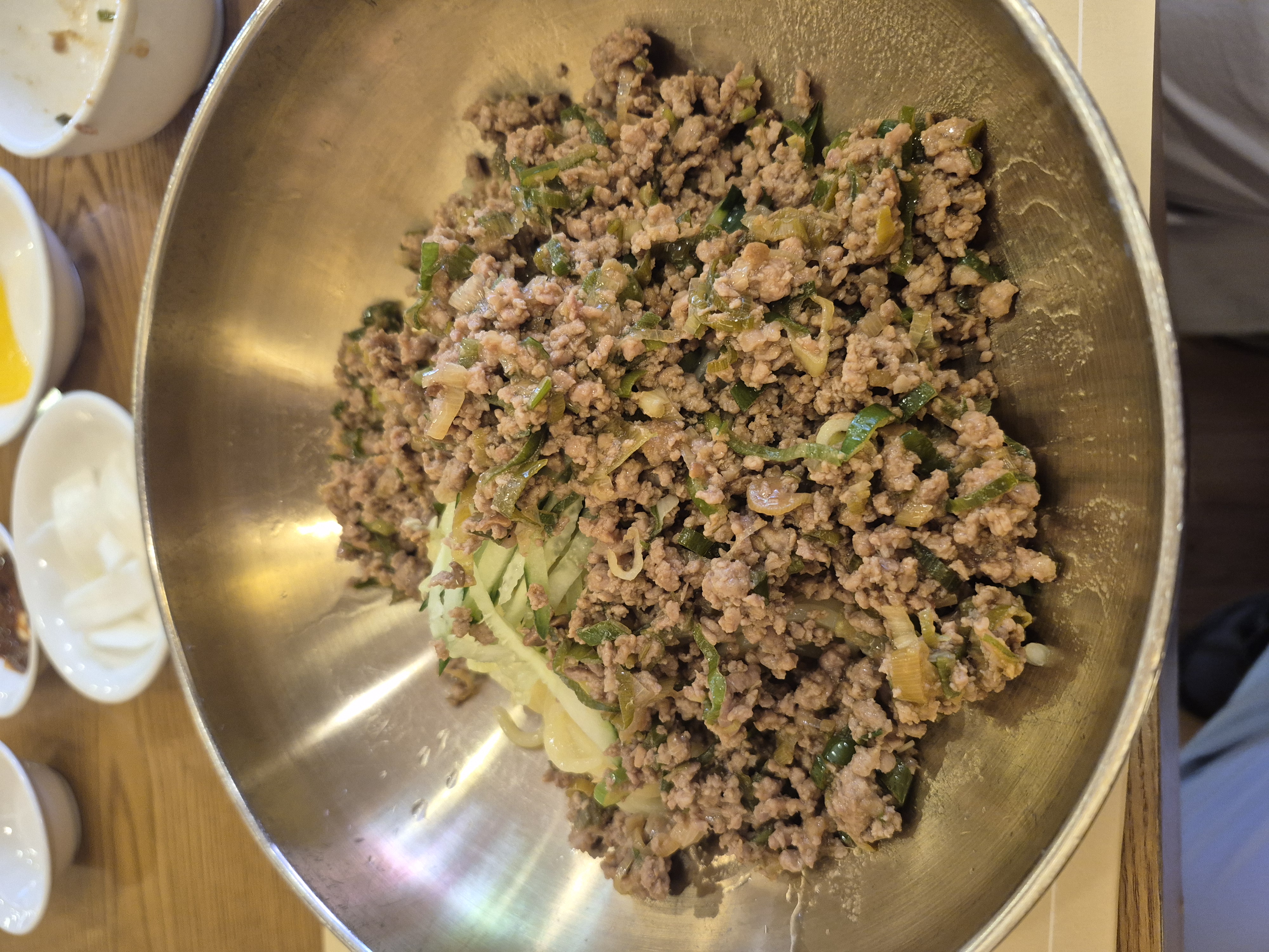 다진 돼지고기에 황장으로 볶은 소스를 쫄깃한 면에 비벼먹는 방식인데 일반적인 짜장면, 간짜장면과는 다른맛입니다.