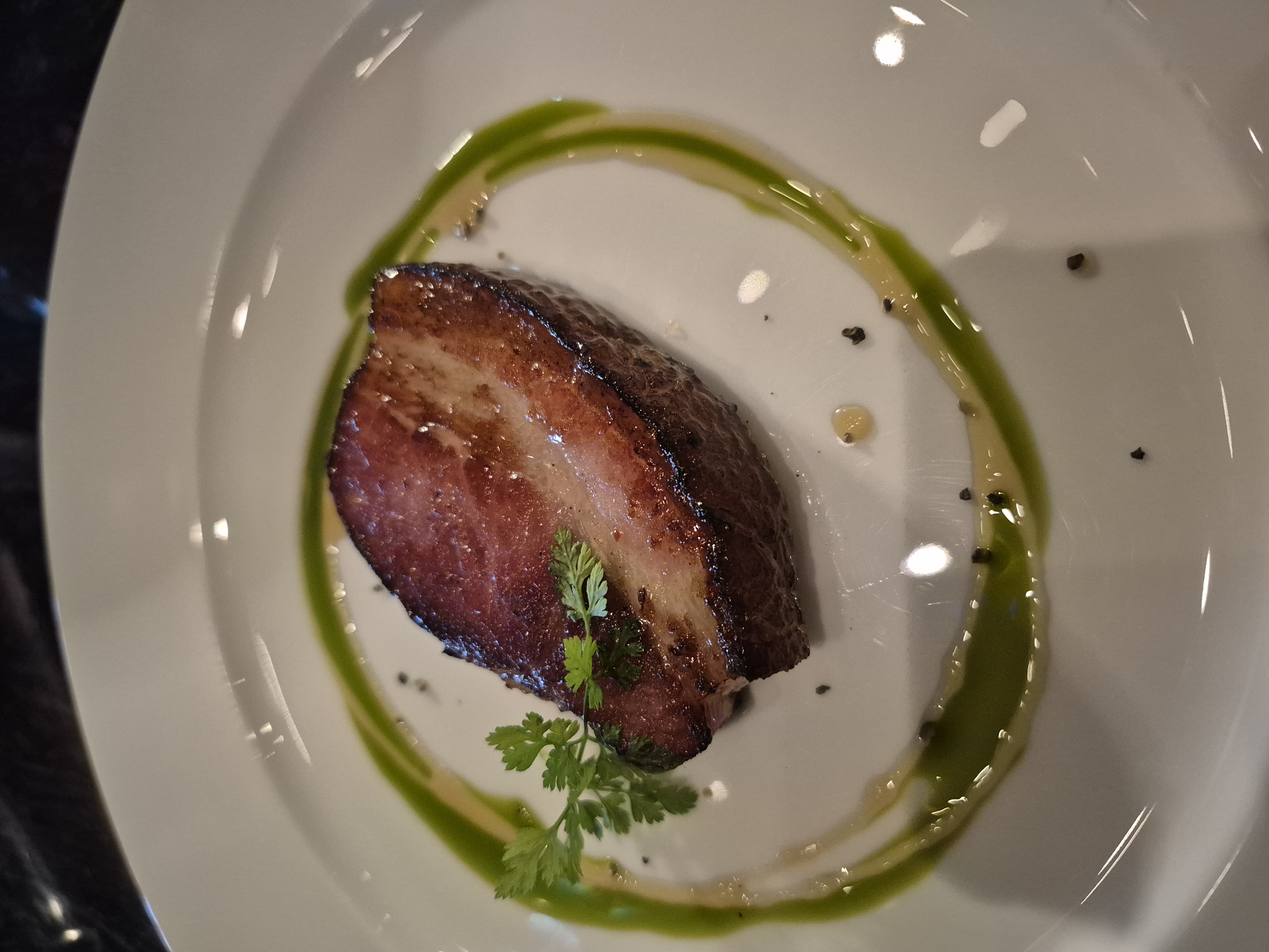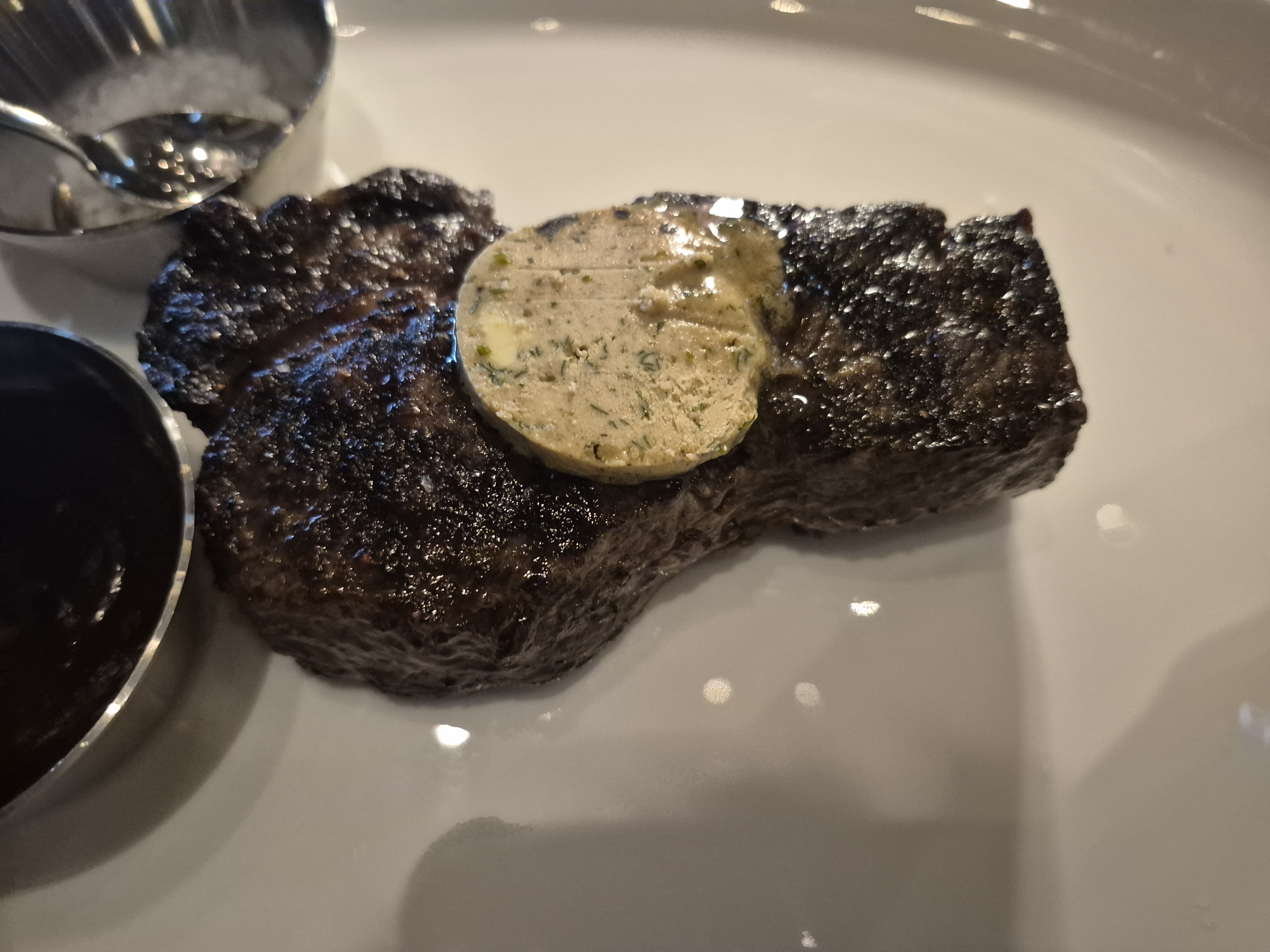 메인은 아마도 푸아그라로 추정되는 음식이 올려진 스테이크가 나왔습니다. 두툼한 고기에 육즙이 풍부하여 소고기구이의 맛을 알수 있었습니다.
